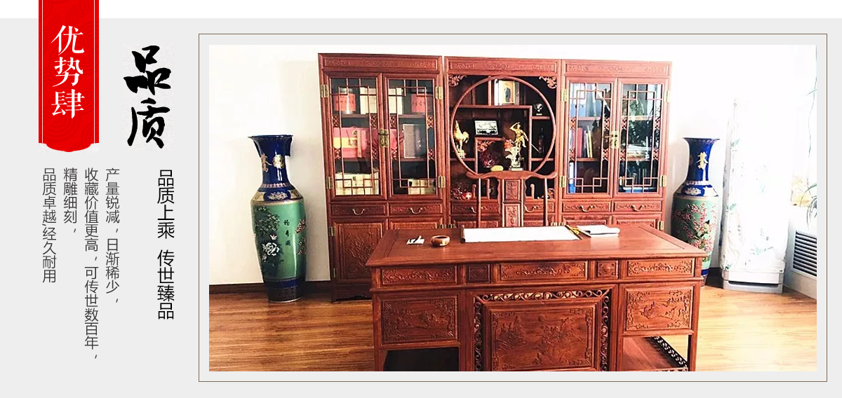東陽市大聯福林堂紅木家具廠座落于素有“東方好萊塢”之稱的國家AAAAA級影視旅游基地橫店影視城, 是一家集開發、設計、生產、銷售、服務為一體的綜合型企業。本公司匯集一批具有豐富生產經驗的能工巧匠,具有豐富的紅木家具設計生產經驗。本公司產品主要選用紫檀、花梨、酸枝、雞翅等優質紅木,并采用純天然蜂蠟飾面。經過蒸煮、脫脂、烘干、定型等多道工序嚴格處理,福林堂紅木始終嚴格秉承“質量第一”、“信譽至上”的經營理念,在繼承傳統工藝的基礎上,不斷創新,大力引進先進家具設備、烘干設備,實現了現代生產工藝與傳統表現手法的有機相融。